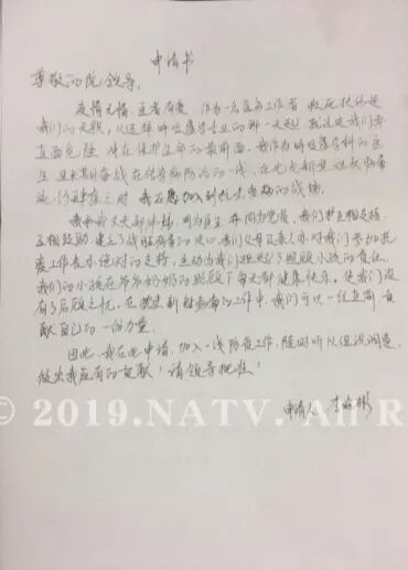 听说主任怕我和丈夫扛不住,打算把我们从一线撤下来。我跟丈夫商量后,决定提交申请书,请求继续待在战“役”一线。