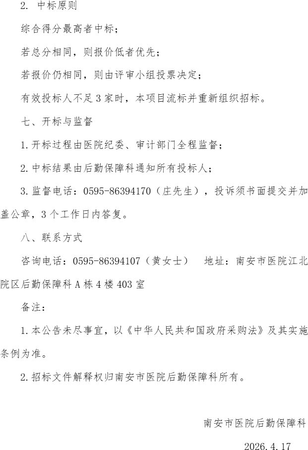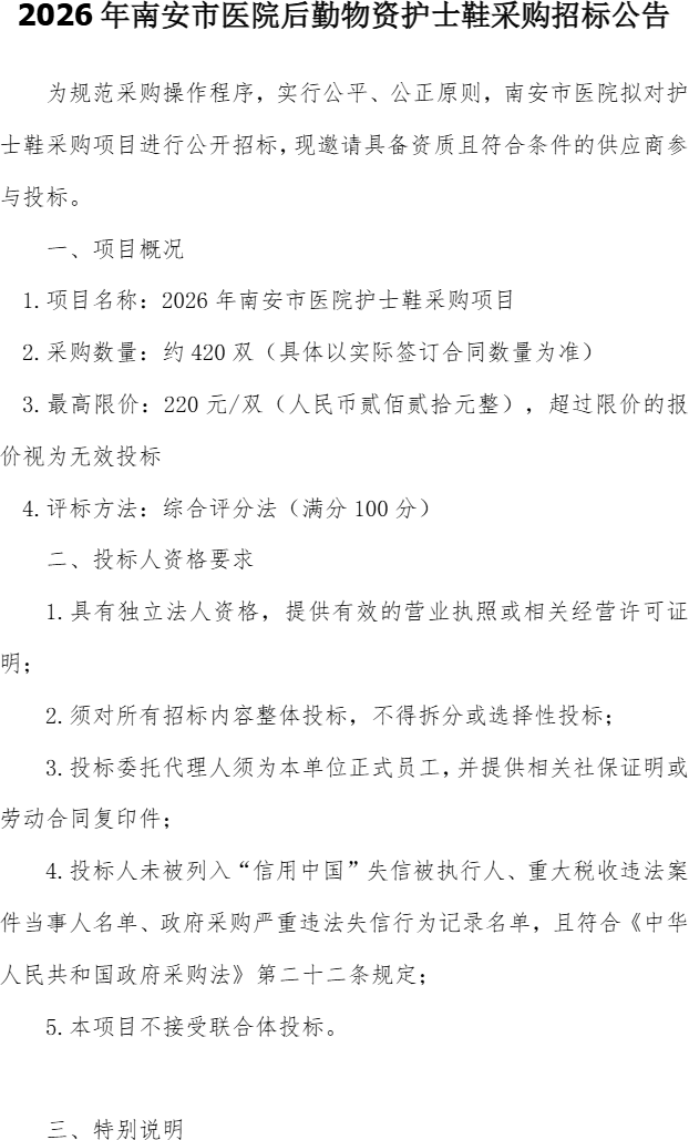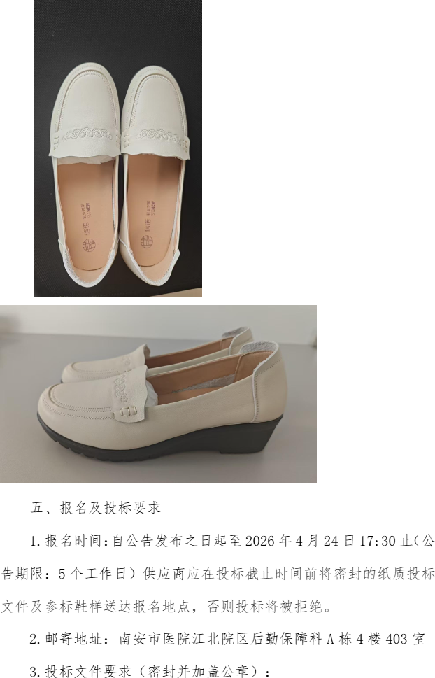 2026年南安市医院后勤物资护士鞋采购招标公告